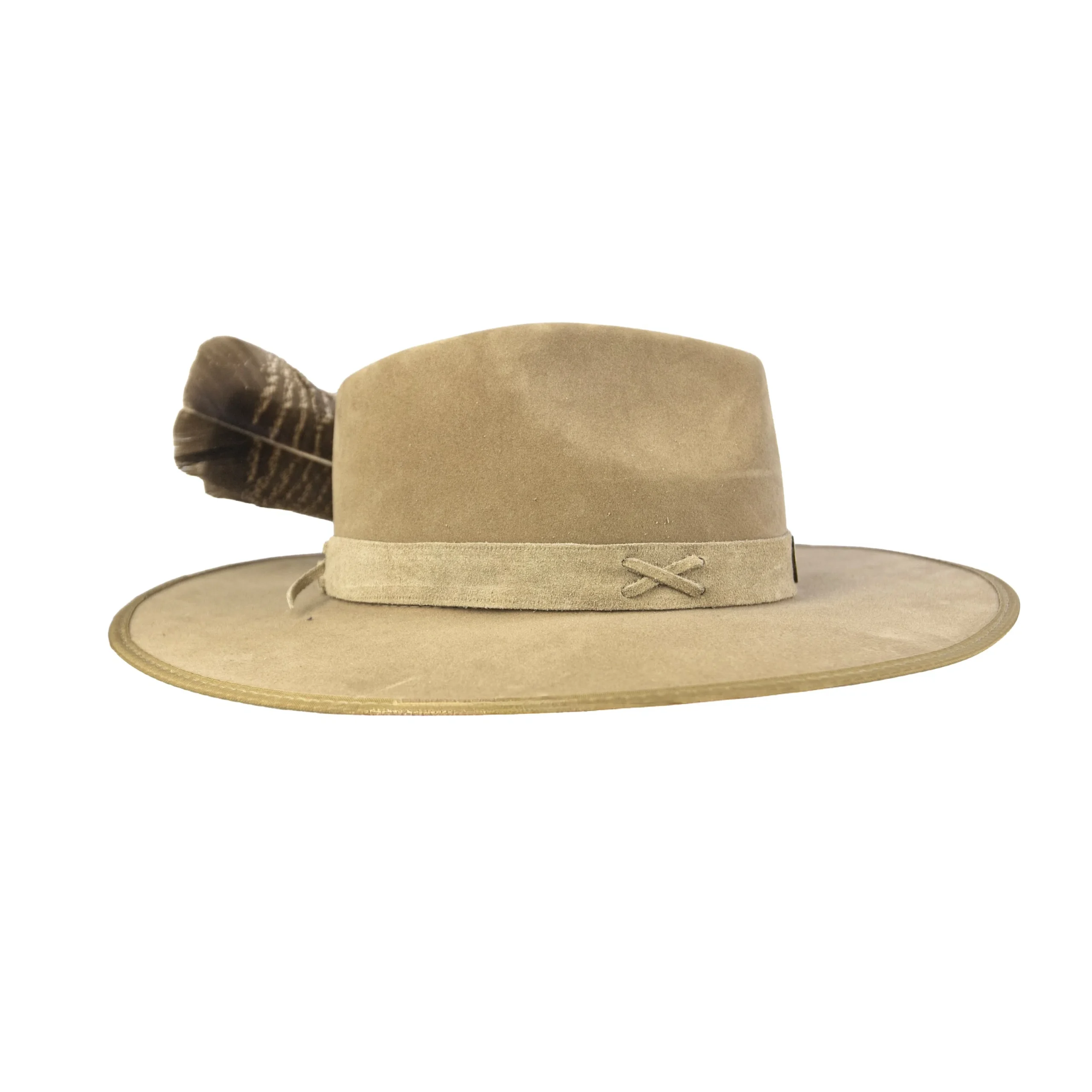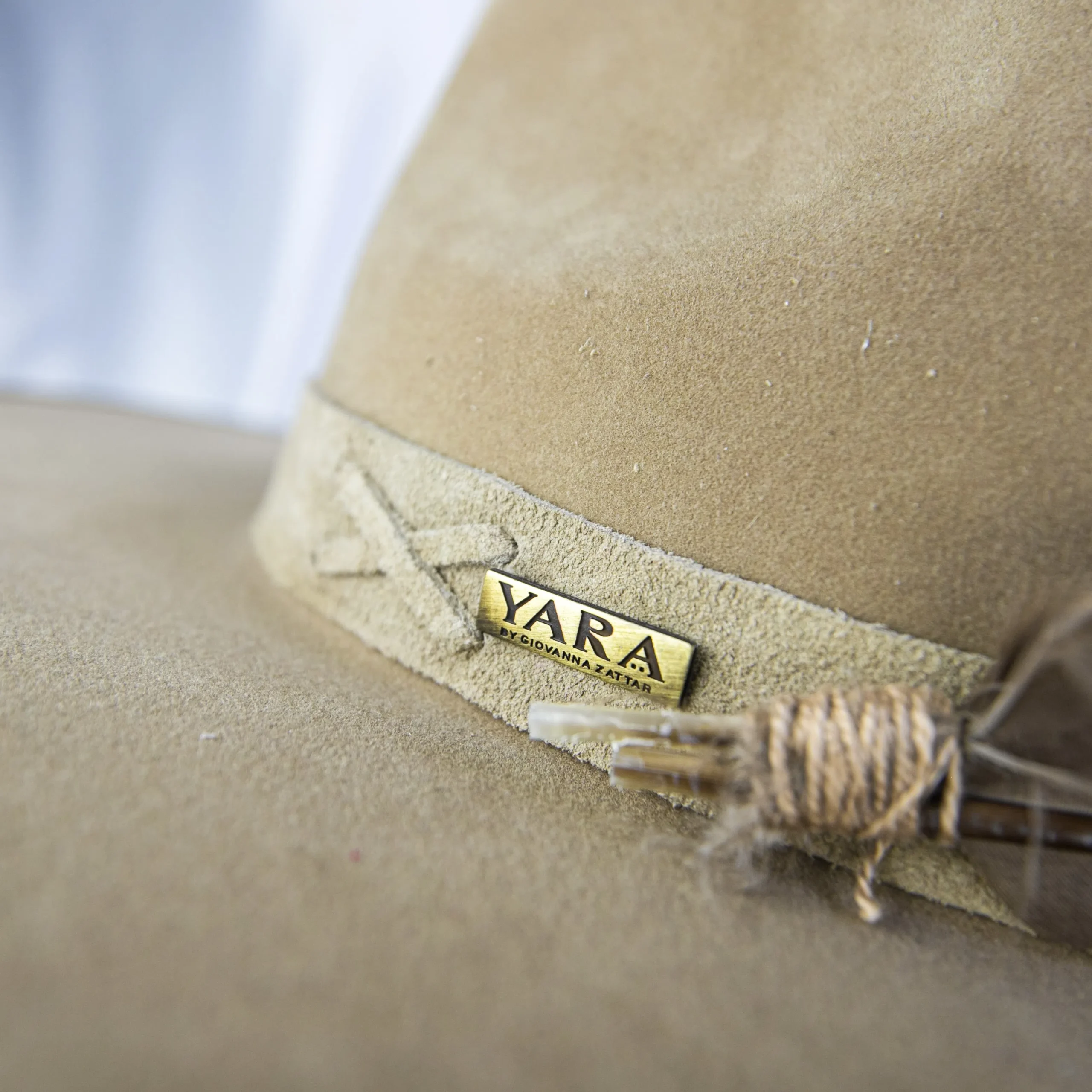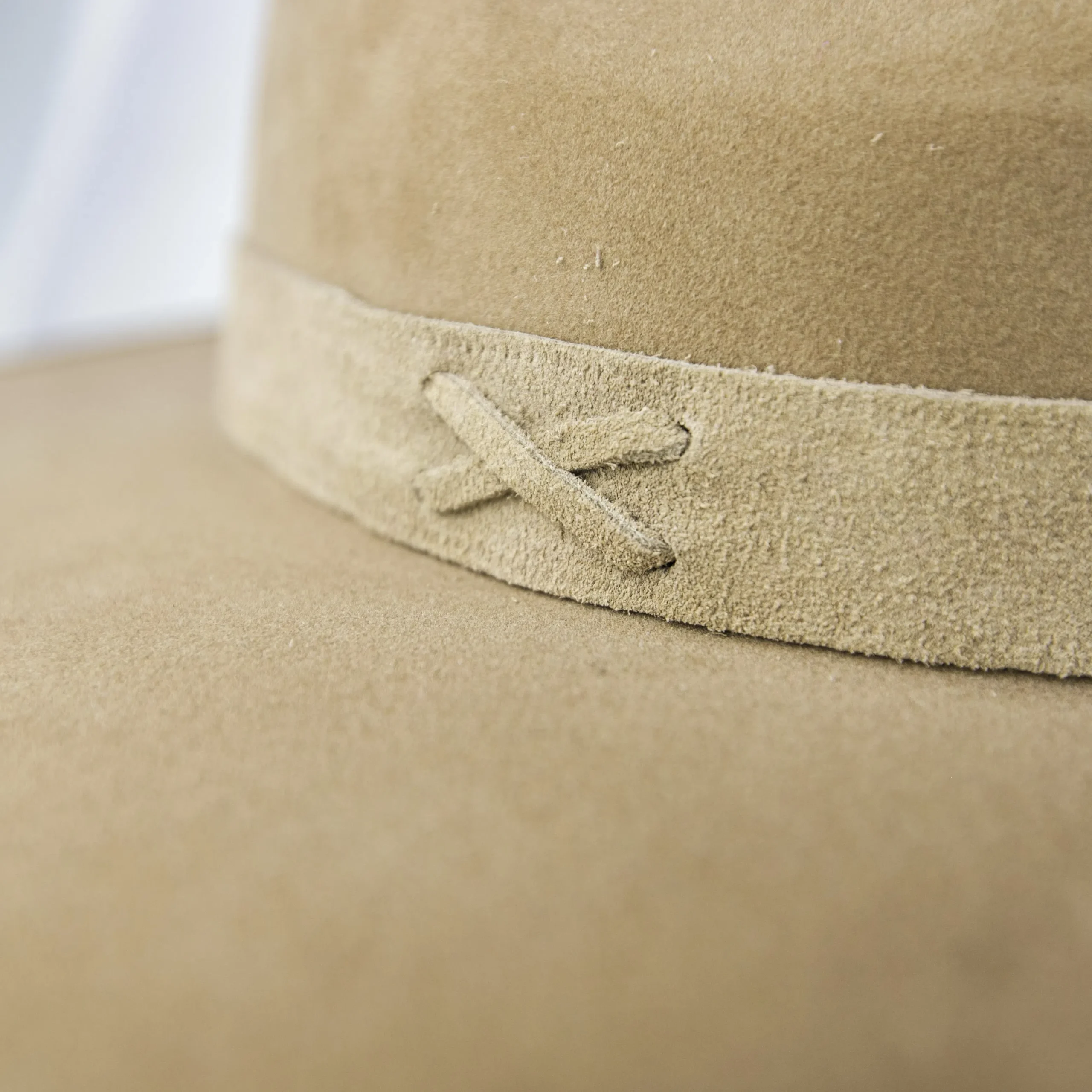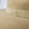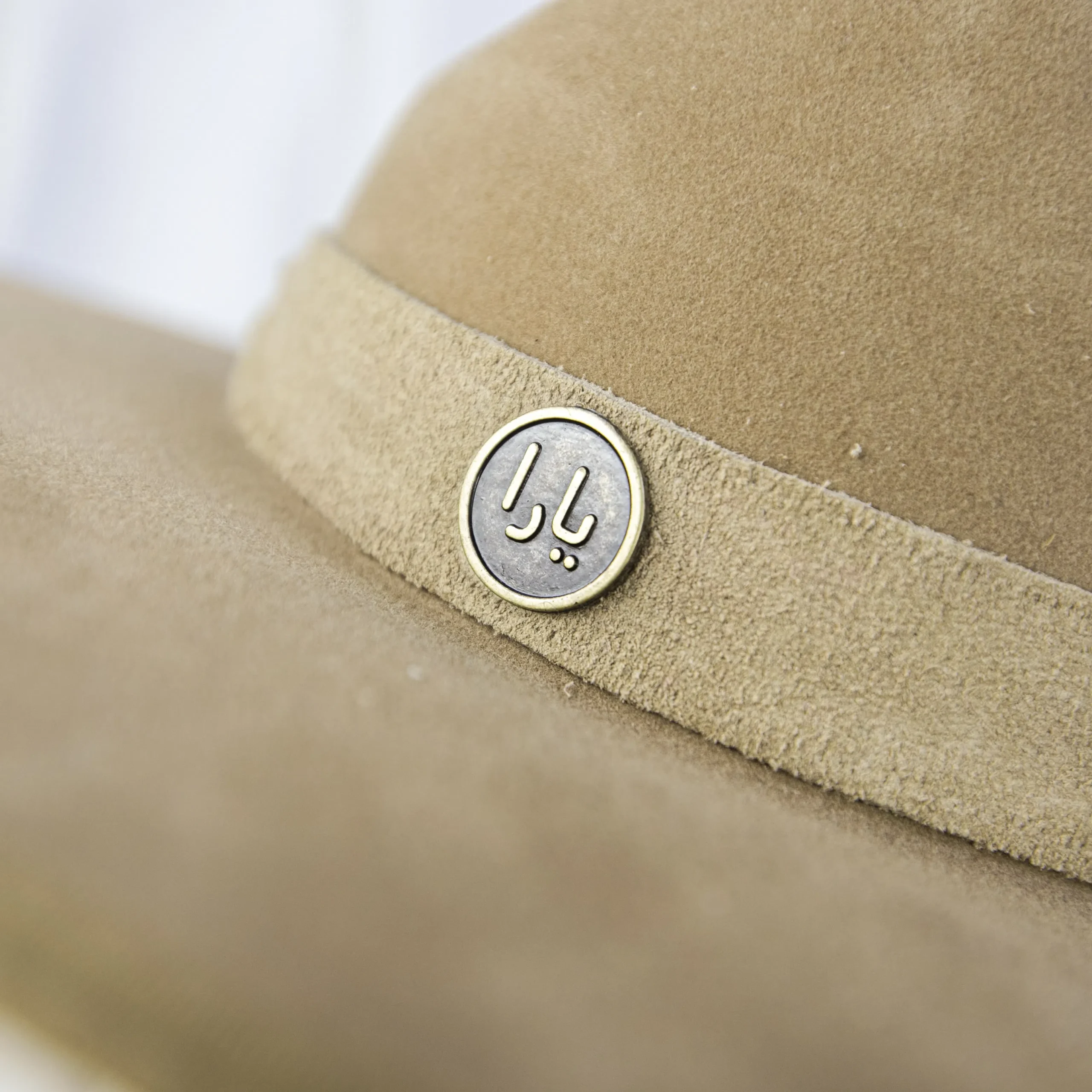 • Chapéu em suede camelo com estrutura firme e aba marcada.