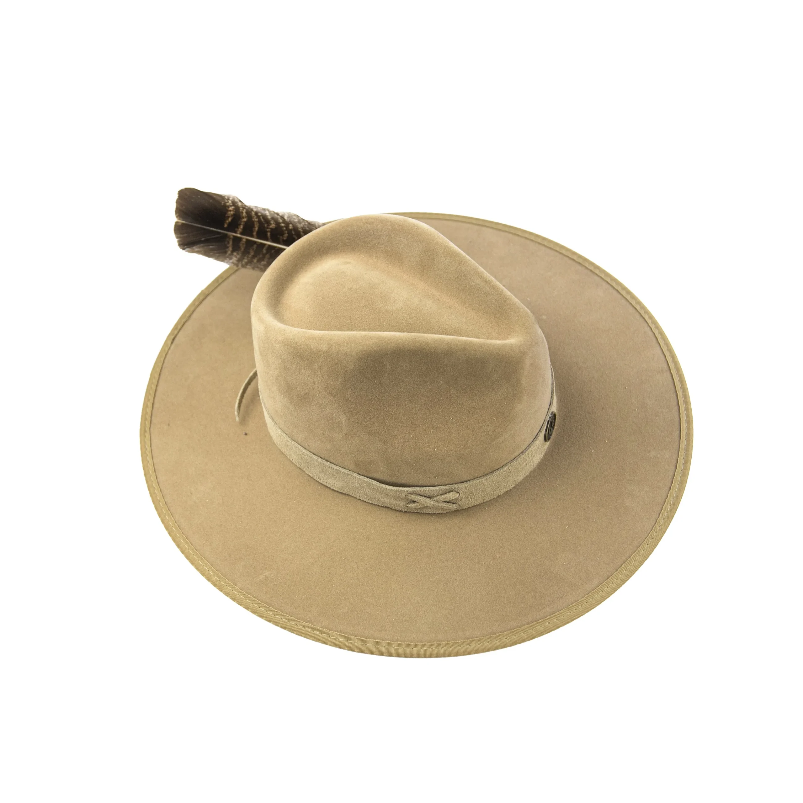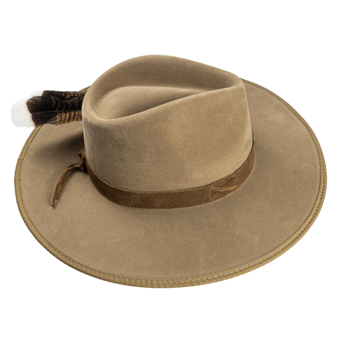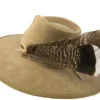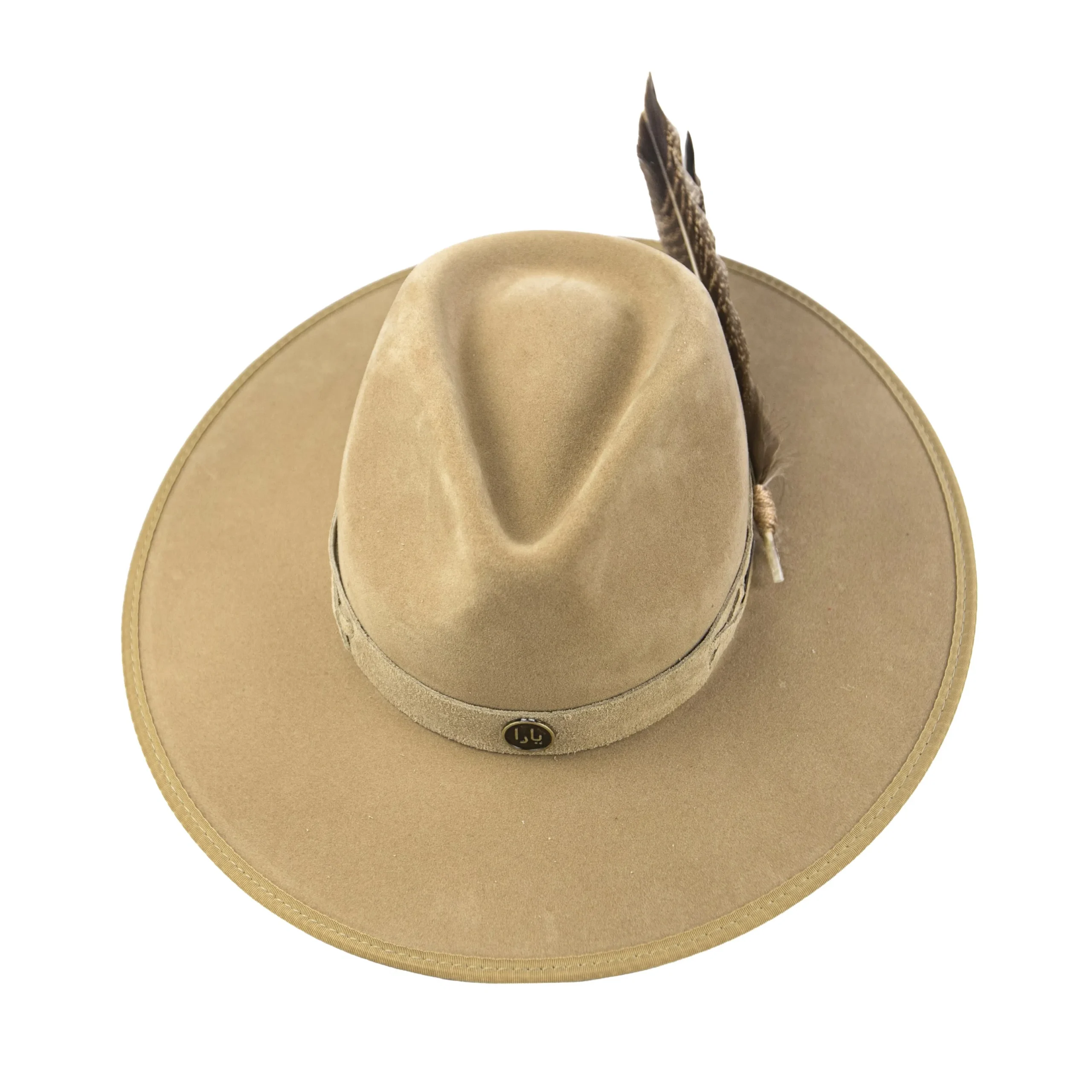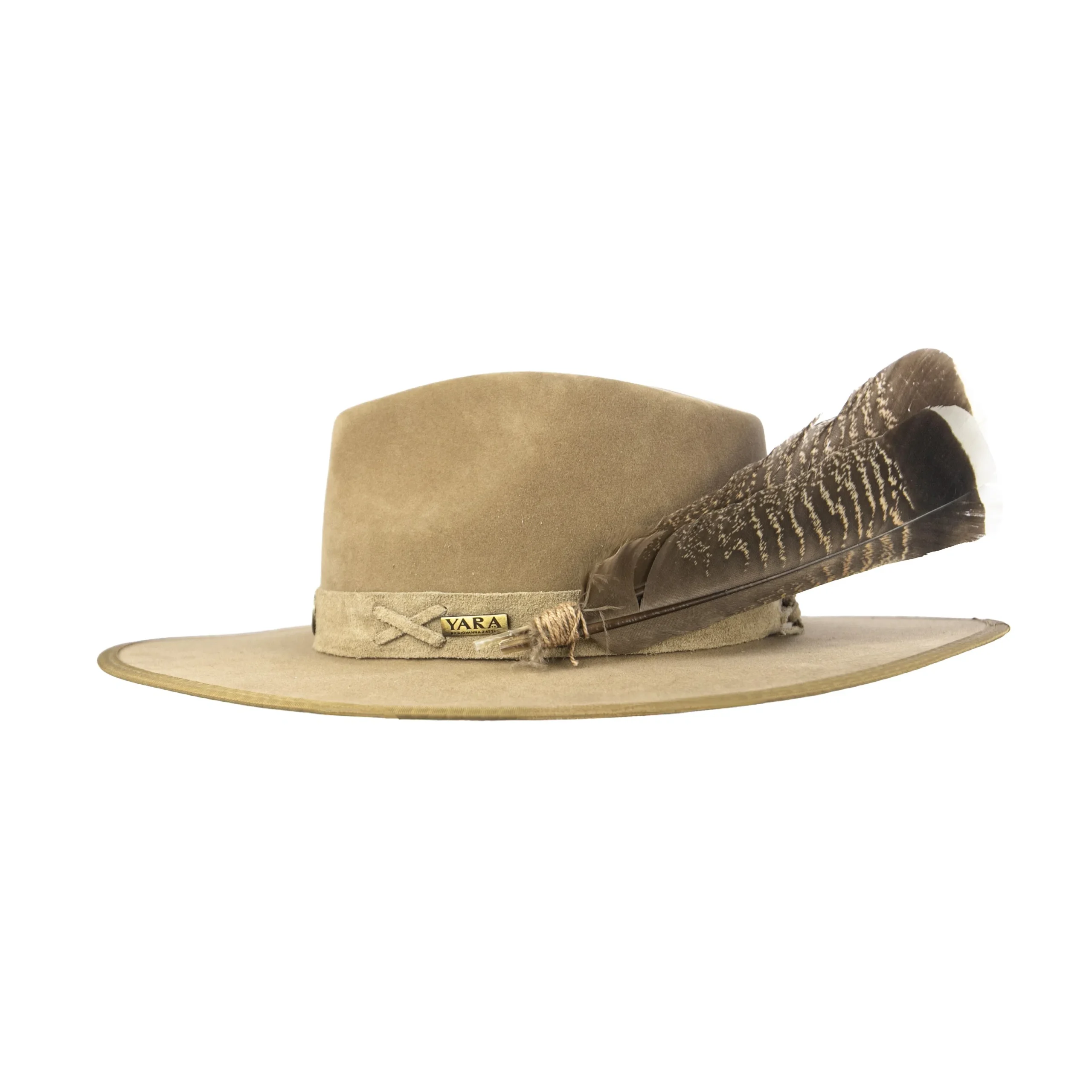 • Chapéu em suede camelo com estrutura firme e aba marcada.