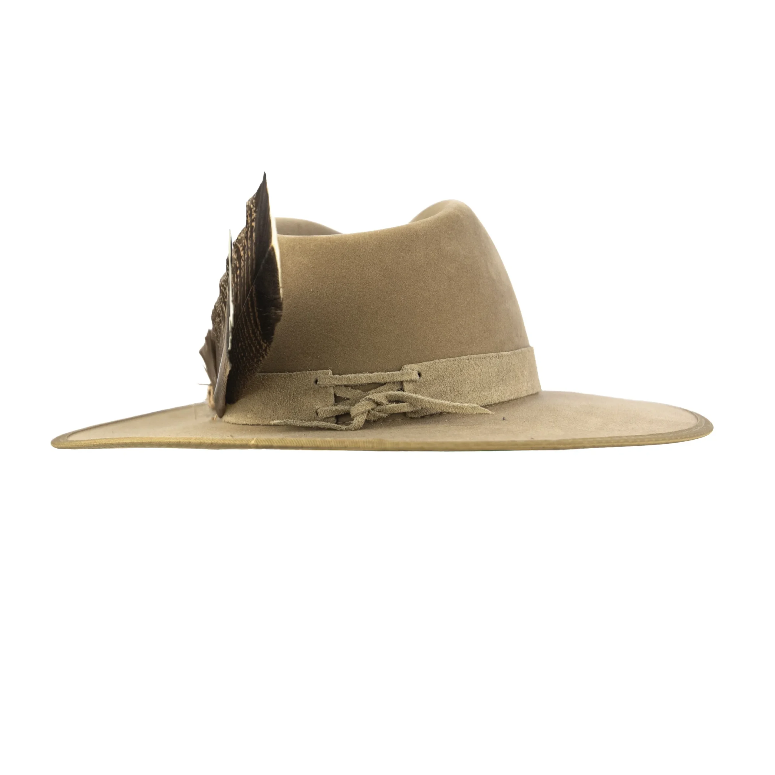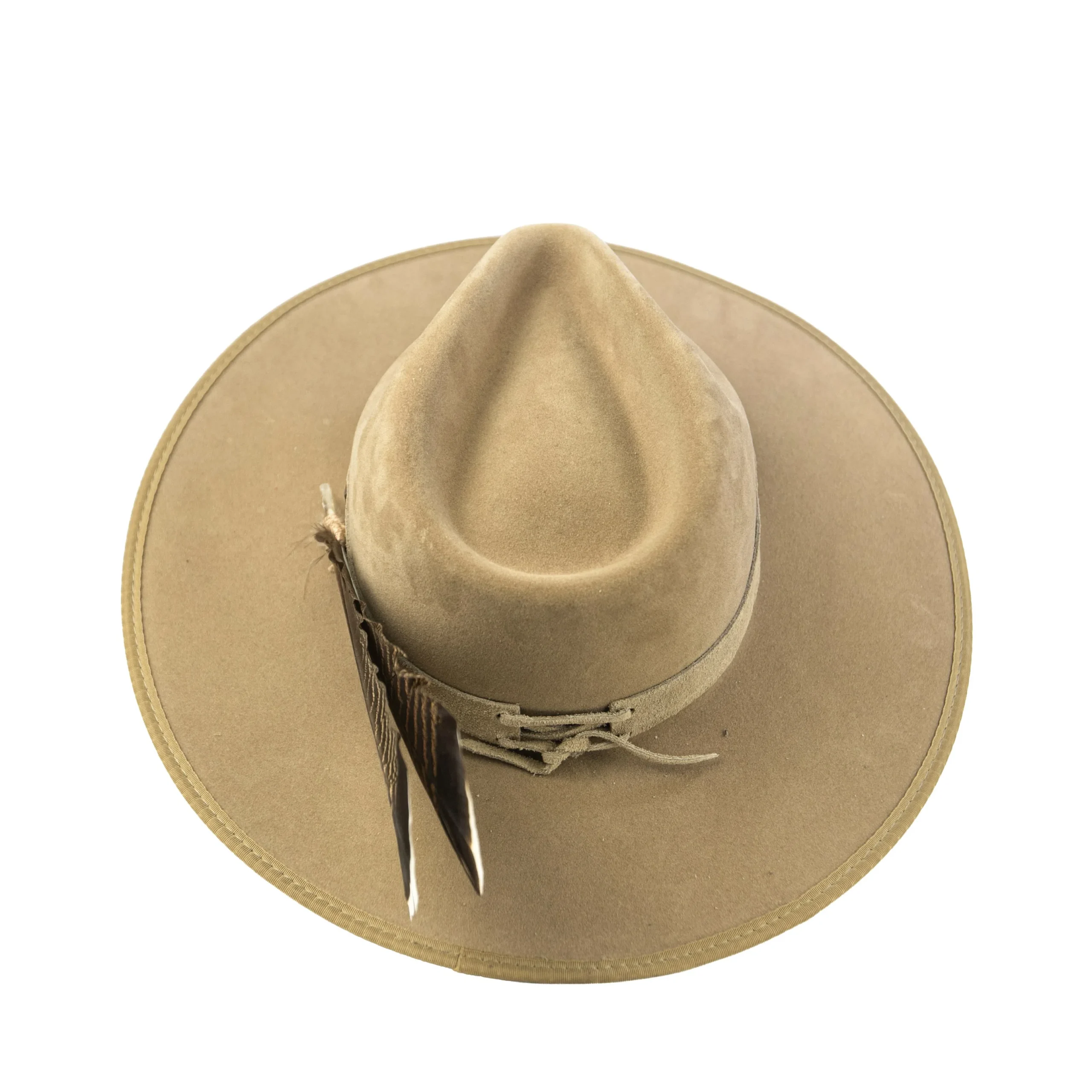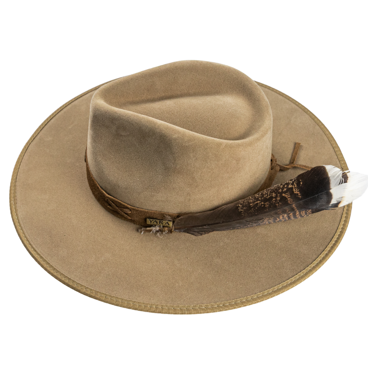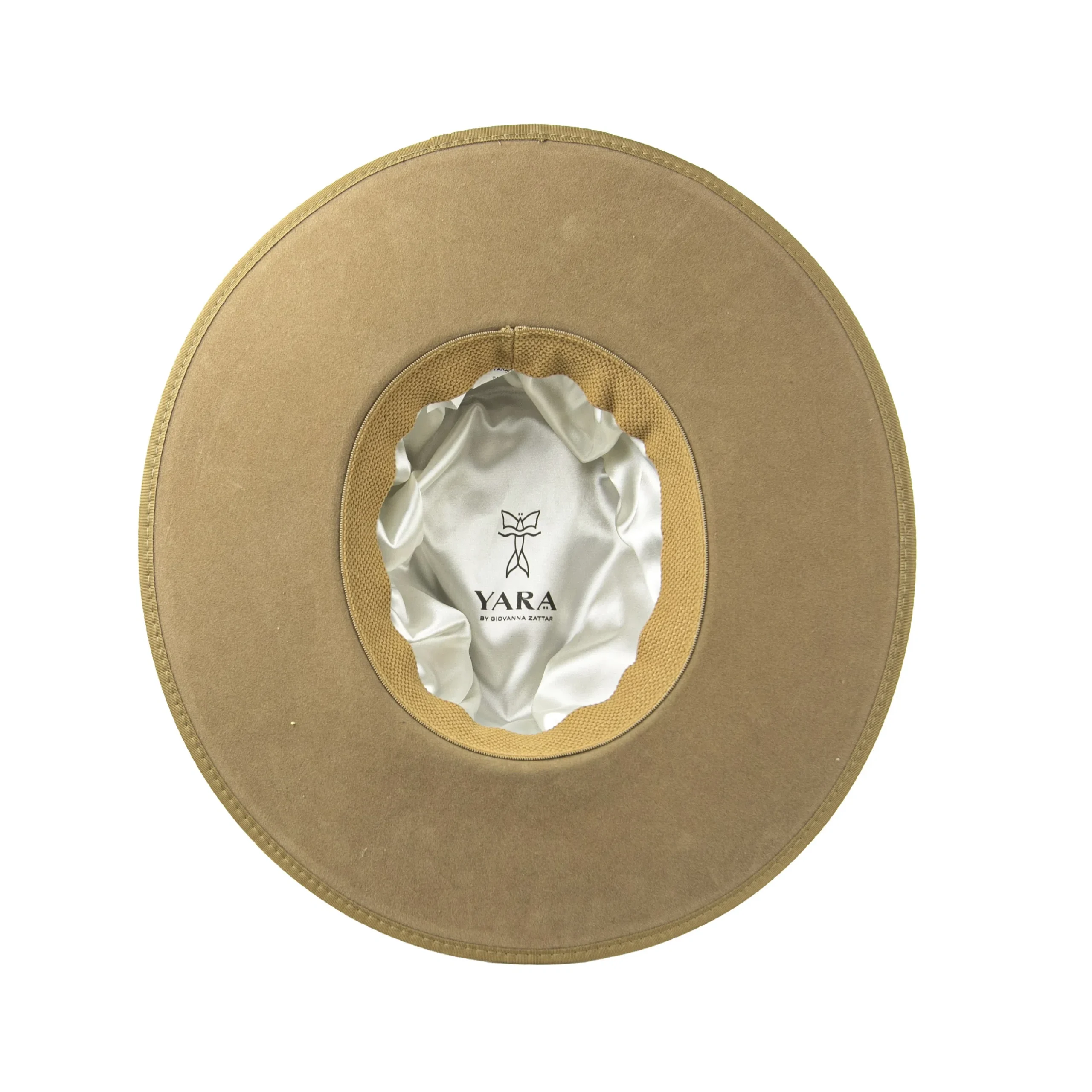 • Chapéu em suede camelo com estrutura firme e aba marcada.