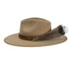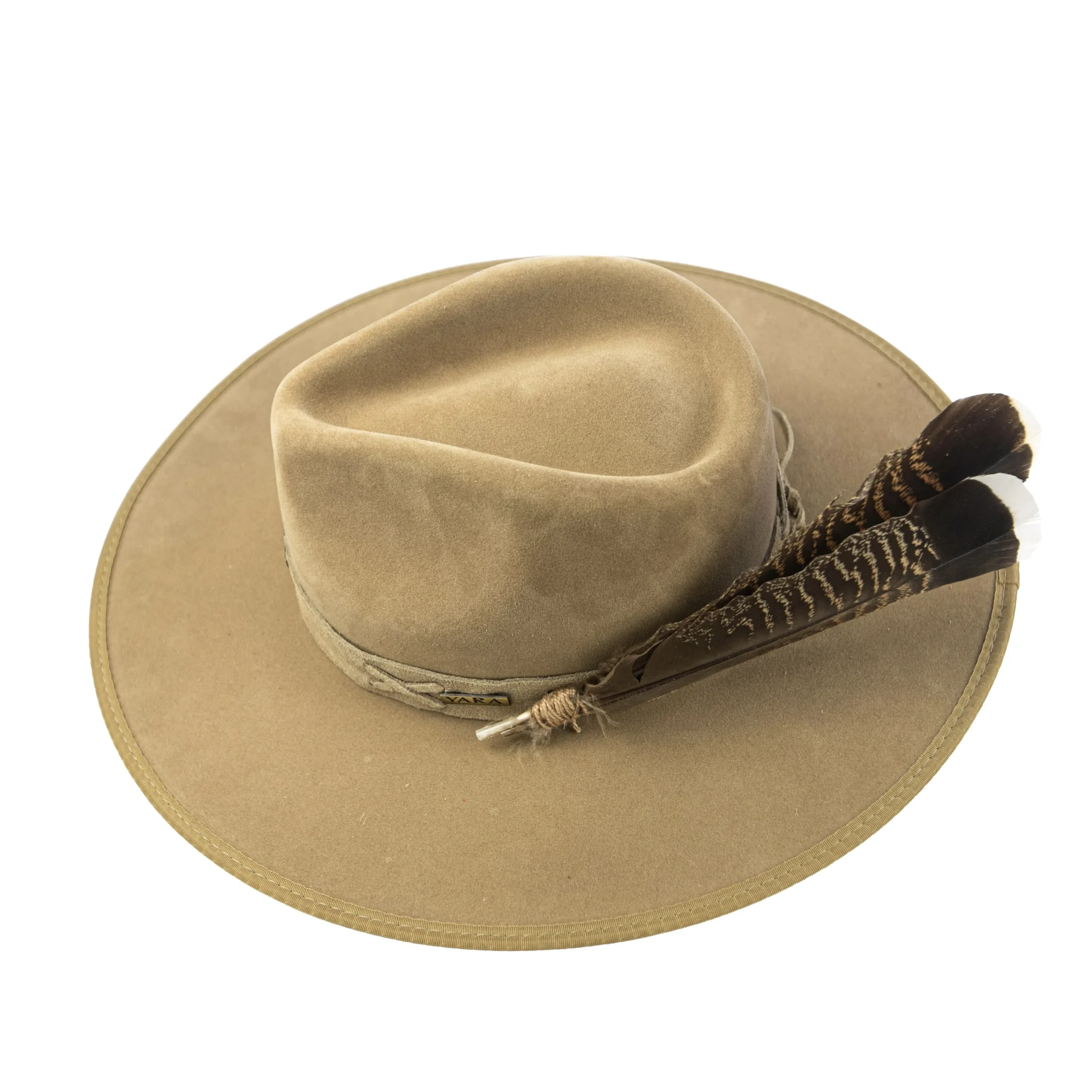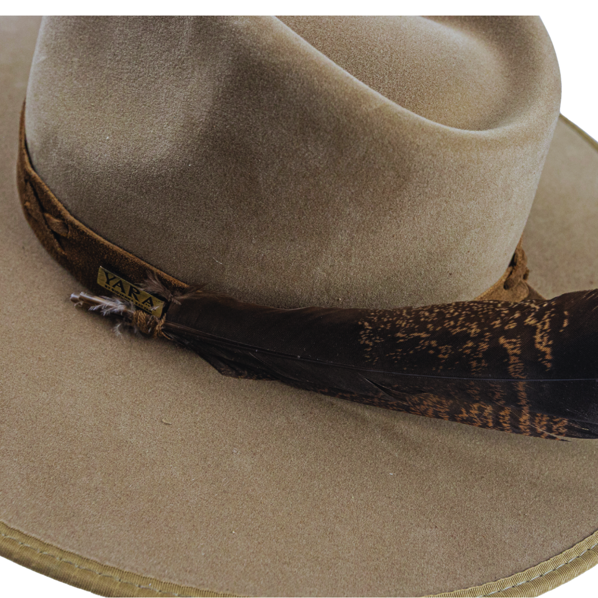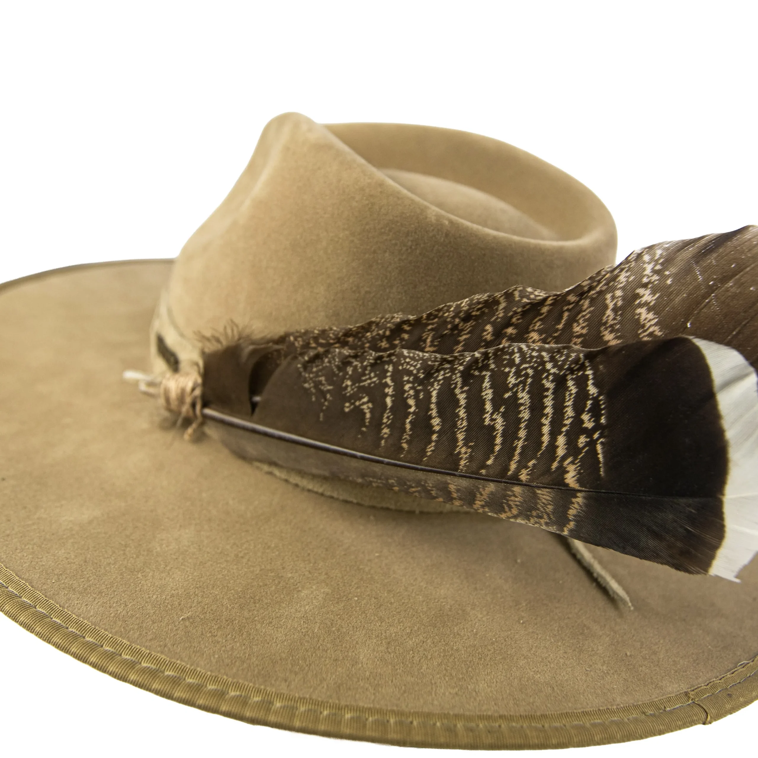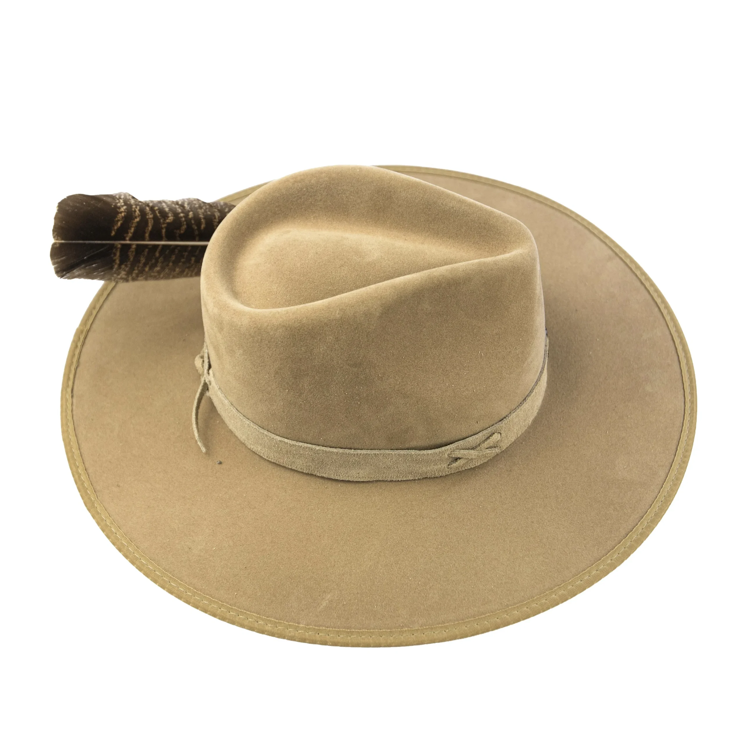 • Chapéu em suede camelo com estrutura firme e aba marcada.