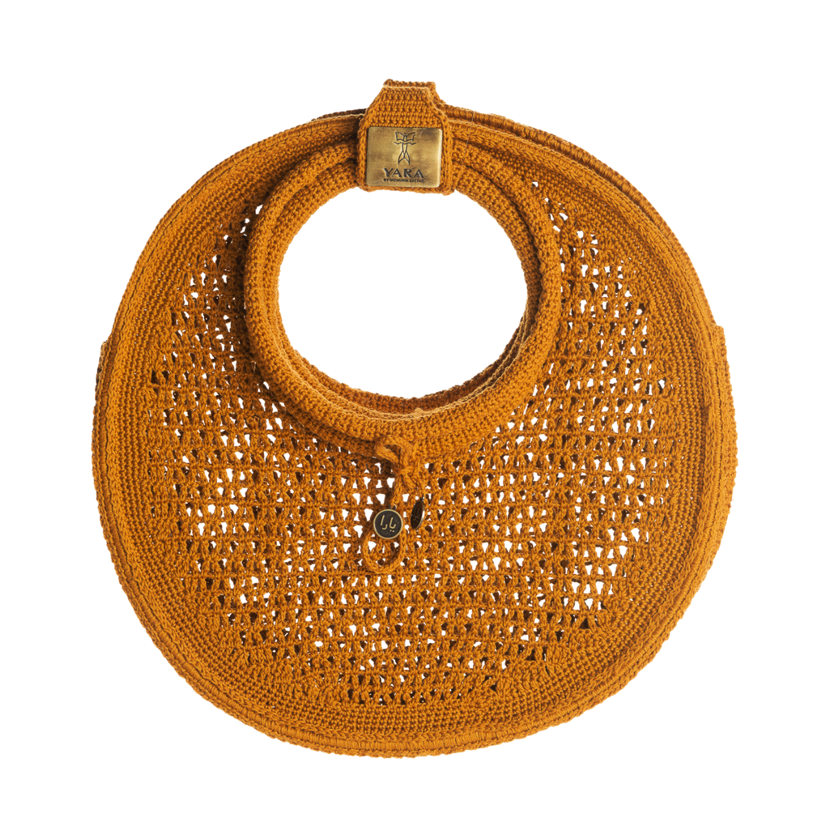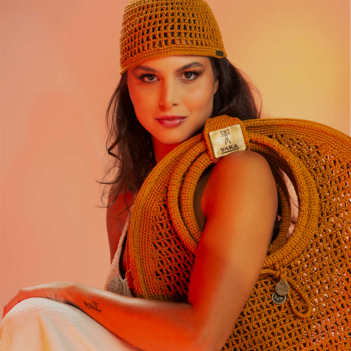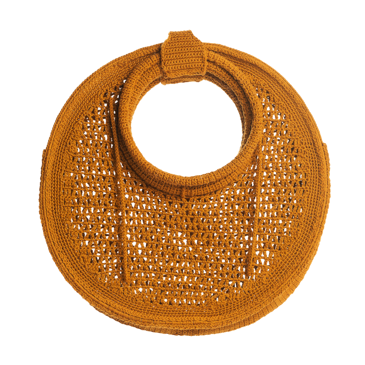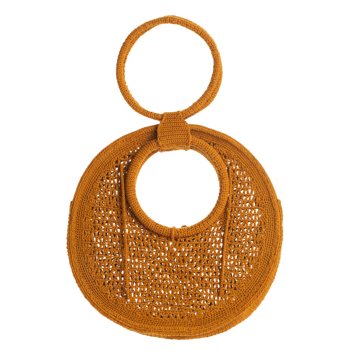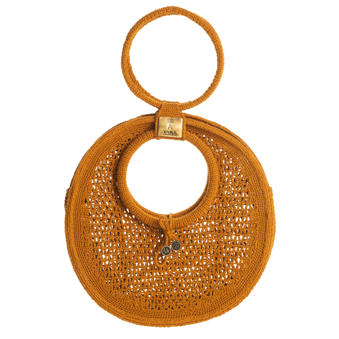 Feita em crochê 100% algodão mercerizado, com argolas acrílicas revestidas, a Eclipse combina natureza, misticismo e sofisticação.