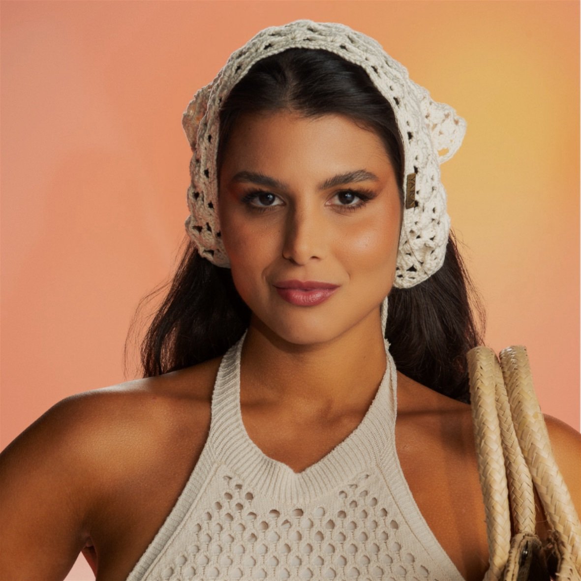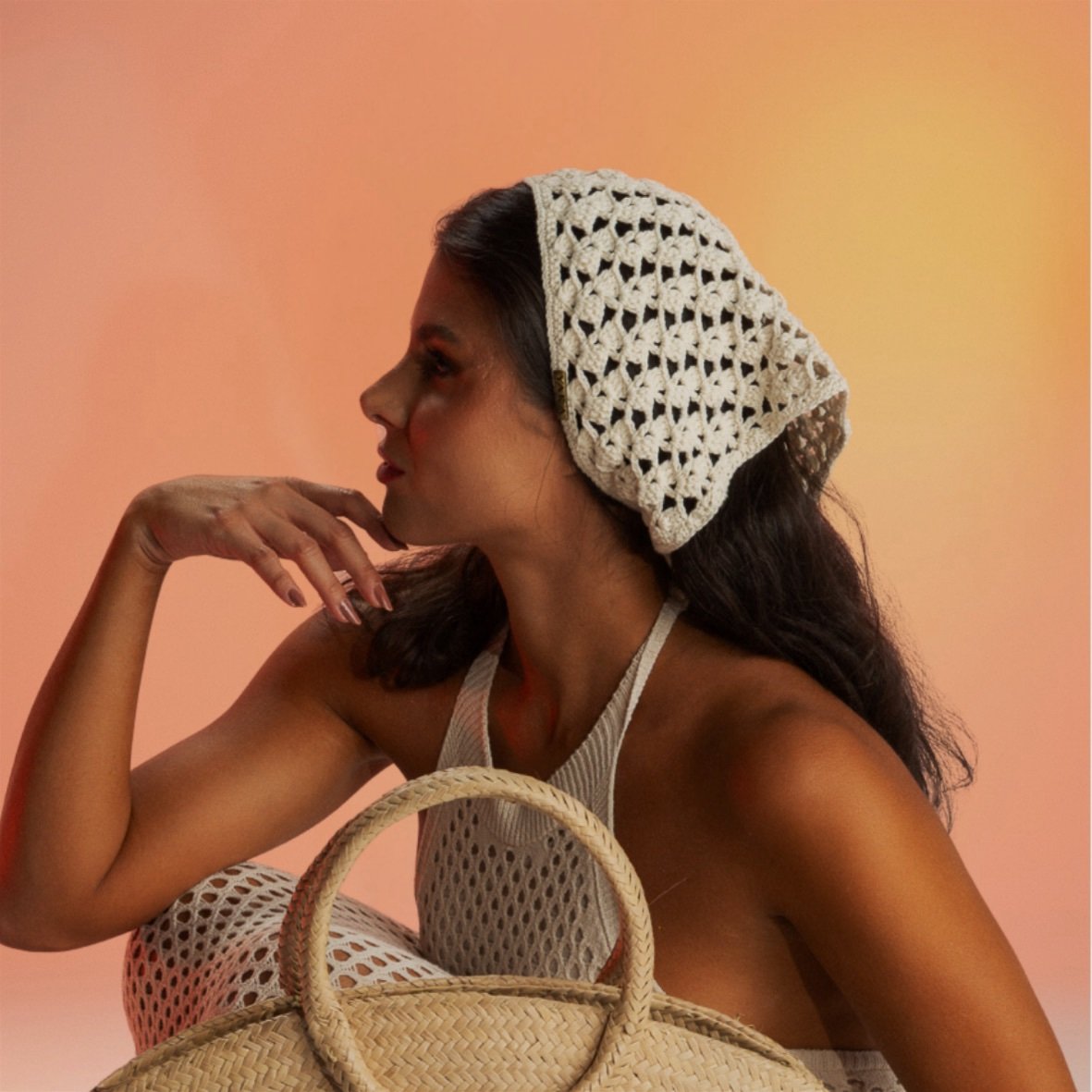 Feita à mão em crochê 100% algodão mercerizado, sua trama fechada envolve e revela, como quem entende o poder do detalhe.