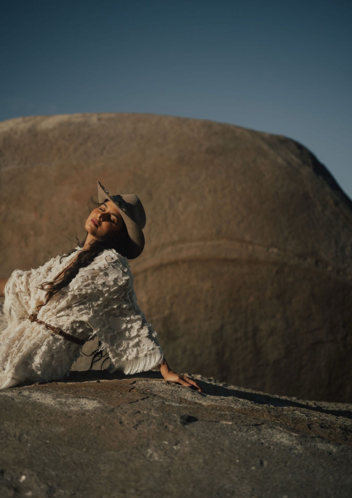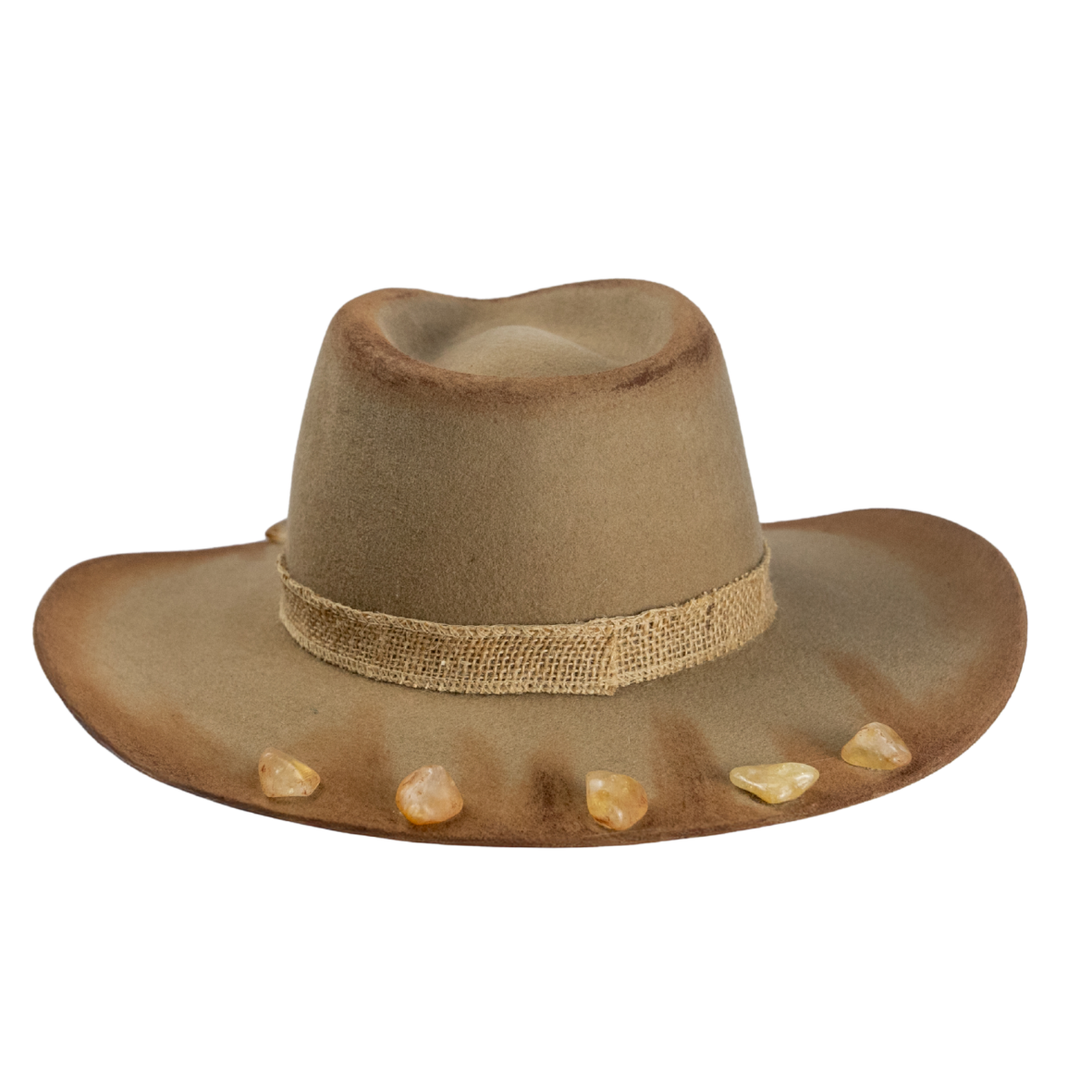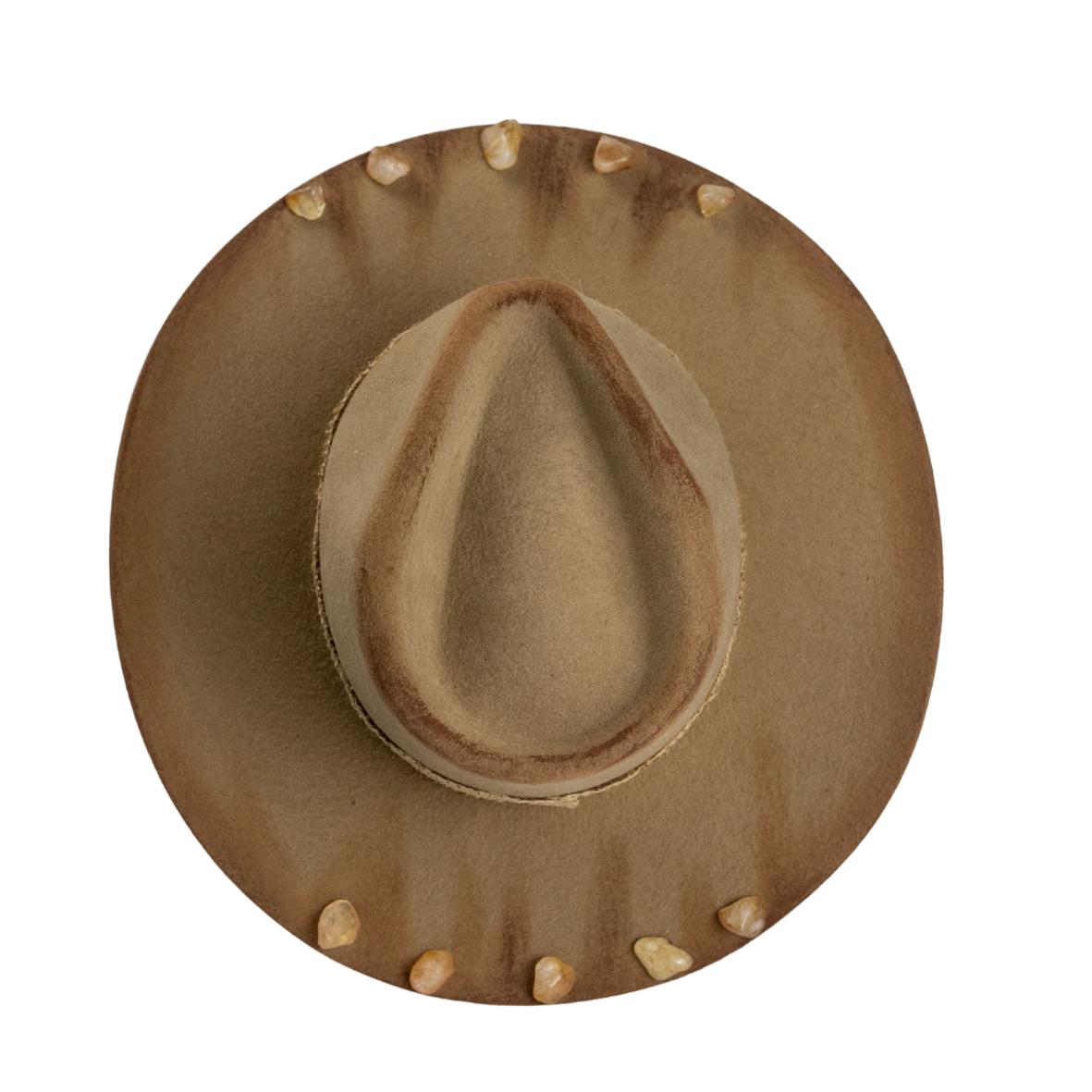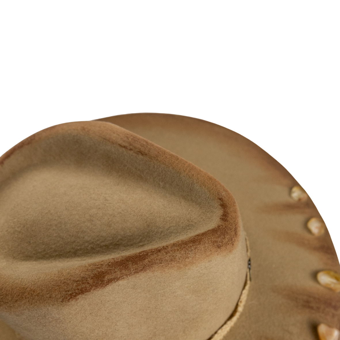 • Modelo western com aba levemente curvada, em 100% lã boliviana na cor camelo.